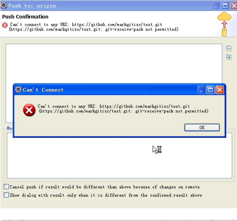 注意这个git-receive-pack not permitted错误,很自然使我们联想到,因为wanzi权限不够,所以push时不被允许(permit)。这是因为mark没有把wanzi作为 collaborator,加入自己的gitHub。所以wanzi不能push。下面就是加的方法。首先mark登录自己的网站。找到自己的库 test/settings/collaborators把wanzi的登录名加进去。见下面的第一图。之后“copy invite link”(https://github.com/markgitisc/test/invitations),发给wanzi。见下面的第二图。wanzi再登录gitHub,把拷贝给他的地址字符串黏贴到地址栏。点击接受就可以了。见下面的第三图。