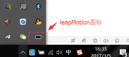 安装完成后会在电脑的右下角有LeapMotion的图标显示,如图所示