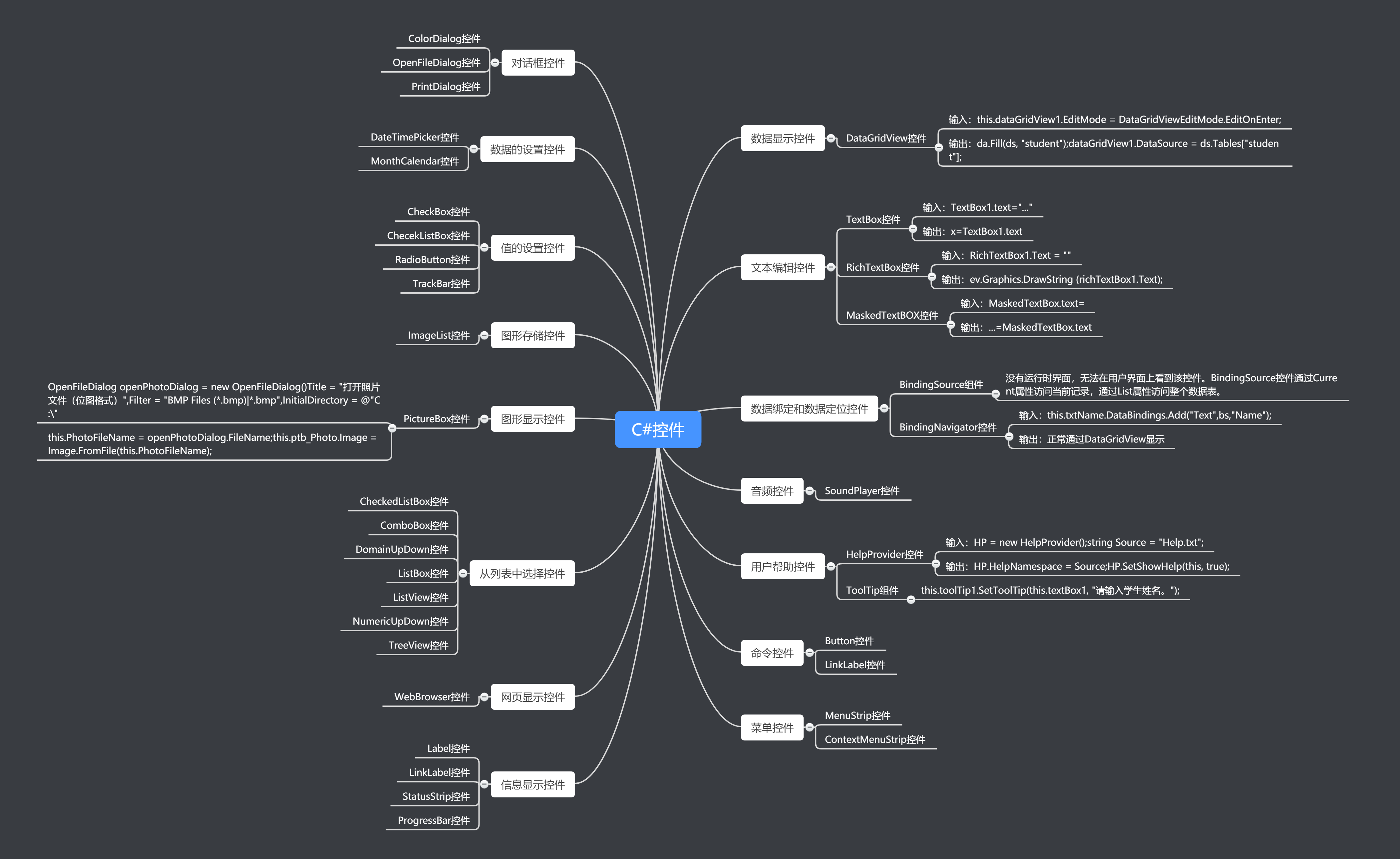 以上就是爱笑茉莉最近收集整理的关于【转】C#各类控件的输入输出(思维导图、知识点分析、案例解析)的全部内容,更多相关【转】C#各类控件内容请搜索靠谱客的其他文章。