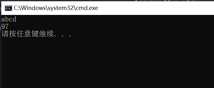 读取用户输入的第一个字符(如果输入一个字符串则只读取第一个字符),返回其对应的ASCII码值