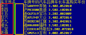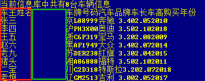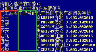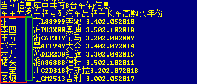 printf("车主姓名车牌号码汽车品牌车长车高购买年份n");