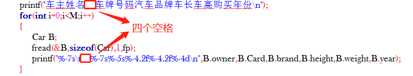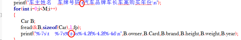 变成printf("车主姓名t车牌号码汽车品牌车长车高购买年份n");