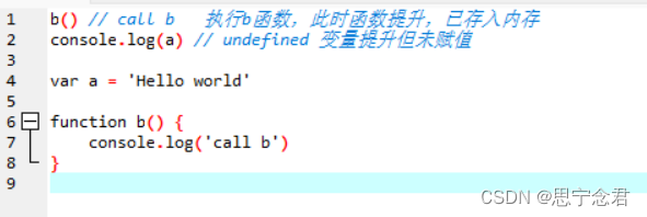 需要注意,函数的变量提升直接将整个函数存入内存中,而变量则是只声明变量但是赋值undefinedi