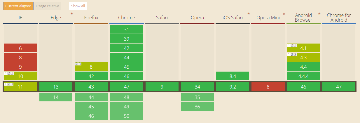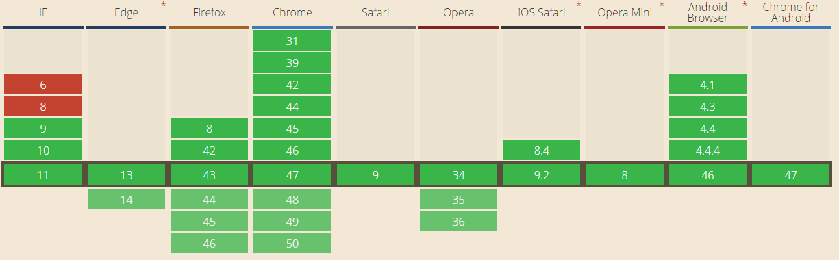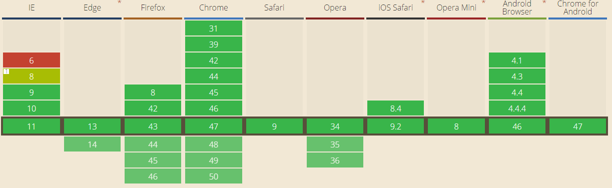 <p class="green strong bigger">我是较大的段落</p>var paragraphs = document.getElementsByClassName("strong red");仍然可以查找到第一个段落元素,getElementsByClassName的浏览器支持情况如下:![]()