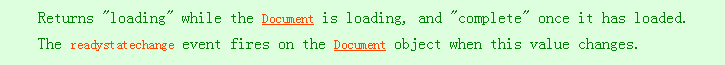 3.3.1 readyStateIE4首先为document设置了readyState属性,其他浏览器也陆续增加了这个属性,HTML最终将这个属性写入了标准。在IE中,document的readyState属性包括两个值:[1]loading:正在载入文档[2]complete:文档加载结束我们看下标准中对readyState的阐述: