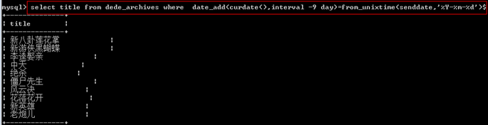 select title from dede_archives where curdate()=from_unixtime(senddate,'%Y-%m-%d')$