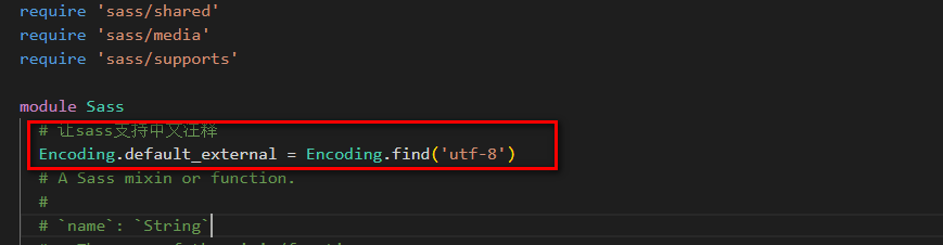 添加中文注释配置项:Encoding.default_external = Encoding.find('utf-8')。
