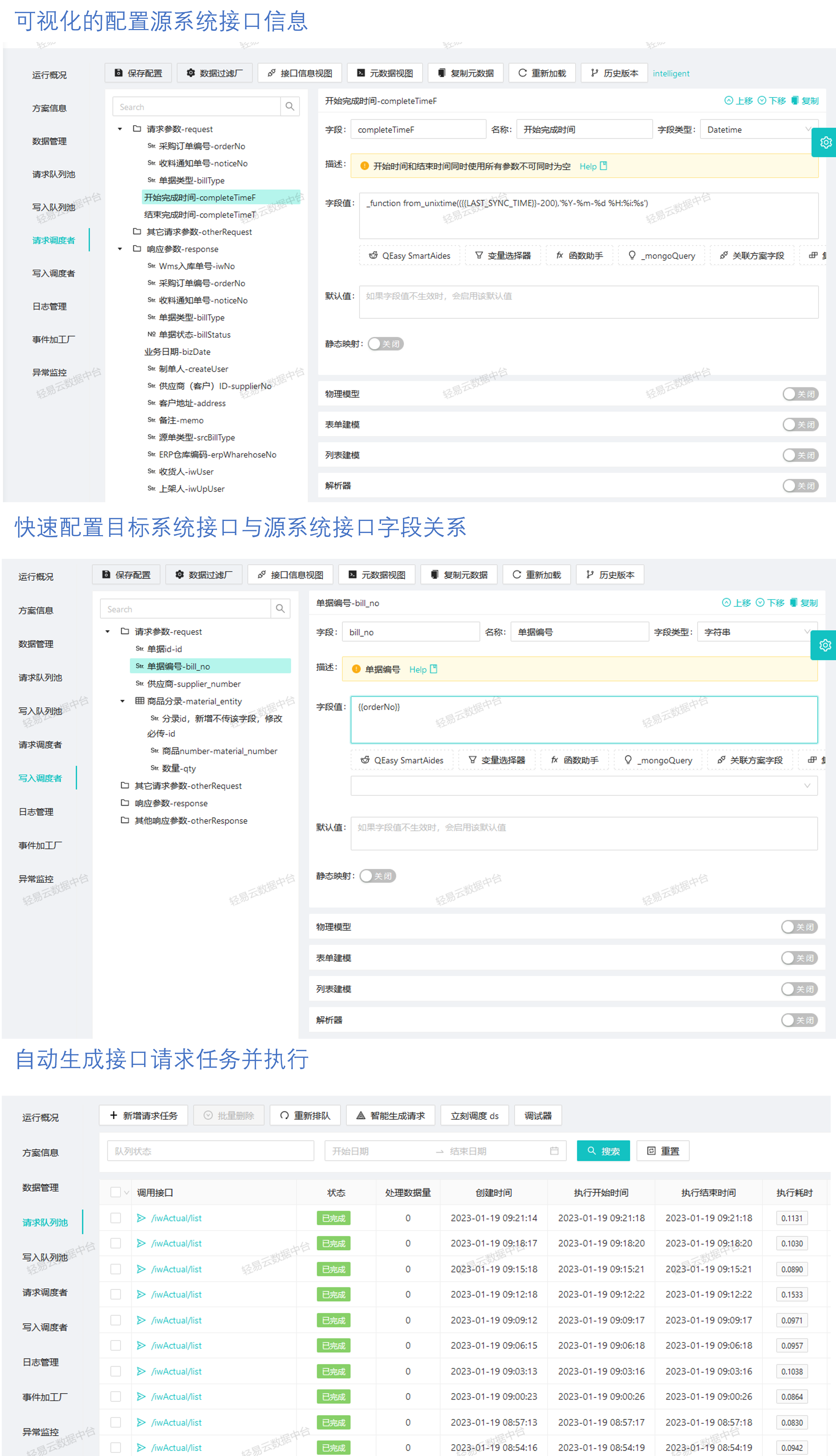 随着企业数字化业务的深入发展,对于企业的 IT 或者 CIO 来讲,正在面临一个愈发重要的问题——系统的结构太复杂了,尤其是头部企业,至少有十多套系统,这些系统之间的蛛网状的接口如果经常出问题。企业内部以及企业内部与外部建立起越来越多的业务应用系统,如何整合企业的现有IT资源,使企业中计算机孤岛式的应用向集体协作的方向发展,发挥资源效益的最大化,降低企业成本,正在逐渐成为企业关注的重要问题。用户希望企业内所有系统集成在一个平台上,操作统一,以节省培训时间。使用在轻易云应用集成平台 + MDM基础数据平台的解决方案中,轻易云应用集成平台负责实现异构、分布式系统之间互联互通,实现服务API治理以及数据传输交换。通过轻易云预置的各种适配器组件,连接现有各孤立应用系统,以图形化、拖拽方式构建集成流程和服务,提高应用系统集成工作效率,降低异构系统集成风险。针对未来可能出现的业务需求变更,在应用集成平台上进行动态调整,实现各应用系统之间的集成策略平滑升级。