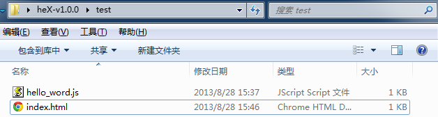 2、创建一个用于写hello word程序的测试目录“test”,同时在其中新建html、js文件,如下图所示