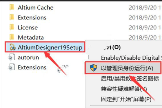 4.鼠标右击【AltiumDesigner19Setup】,选择【以管理员身份运行】。