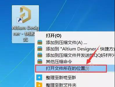 16.在电脑桌面上鼠标右击【Altium Designer-快捷方式】,点击【打开文件所在的位置】。