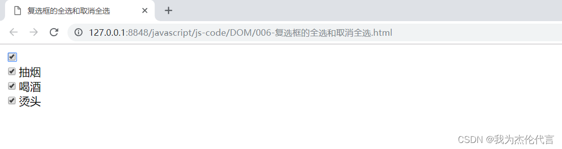 以上就是故意小土豆最近收集整理的关于复选框的全选和取消全选复选框的全选和取消全选的全部内容,更多相关复选框内容请搜索靠谱客的其他文章。