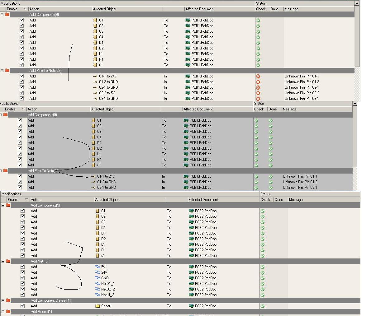 Altium designer原理图导到pcb中,出现一堆“Add pin to nets”错误?但Excute后又没问题?