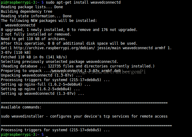 以上就是活力丝袜最近收集整理的关于树莓派remot3.it外网访问最新--安装weavedconnectd的全部内容,更多相关树莓派remot3内容请搜索靠谱客的其他文章。
