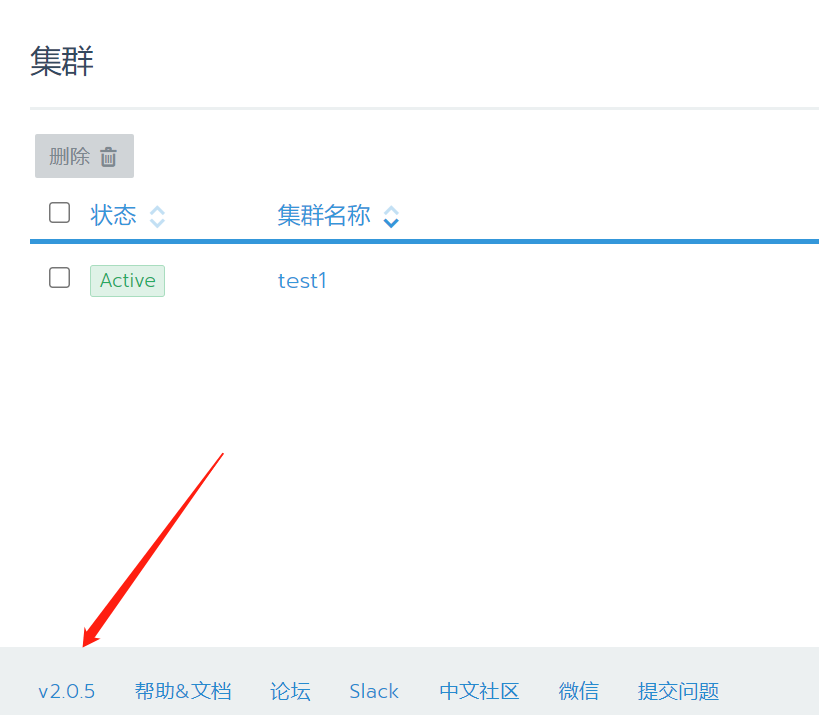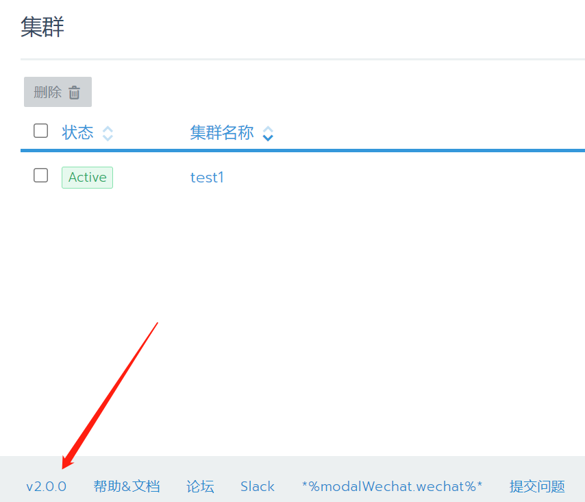 查看rancherweb右下角版本号(例如:v2.0.0) ,在升级过程中需要此版本号。