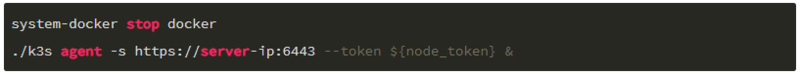 添加额外的agent,node_token使用上面步骤返回的内容替换。同样我们已经不需要docker,依然在RancherOS中停止Docker。