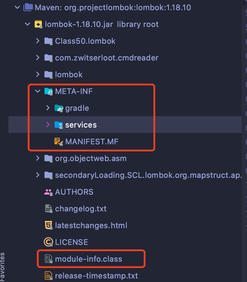 jar包和zip包最大的区别就在于jar包中包含了META-INF目录(不是必须的),我们看一个比较常用的lombok.jar包的结构是怎么样的: