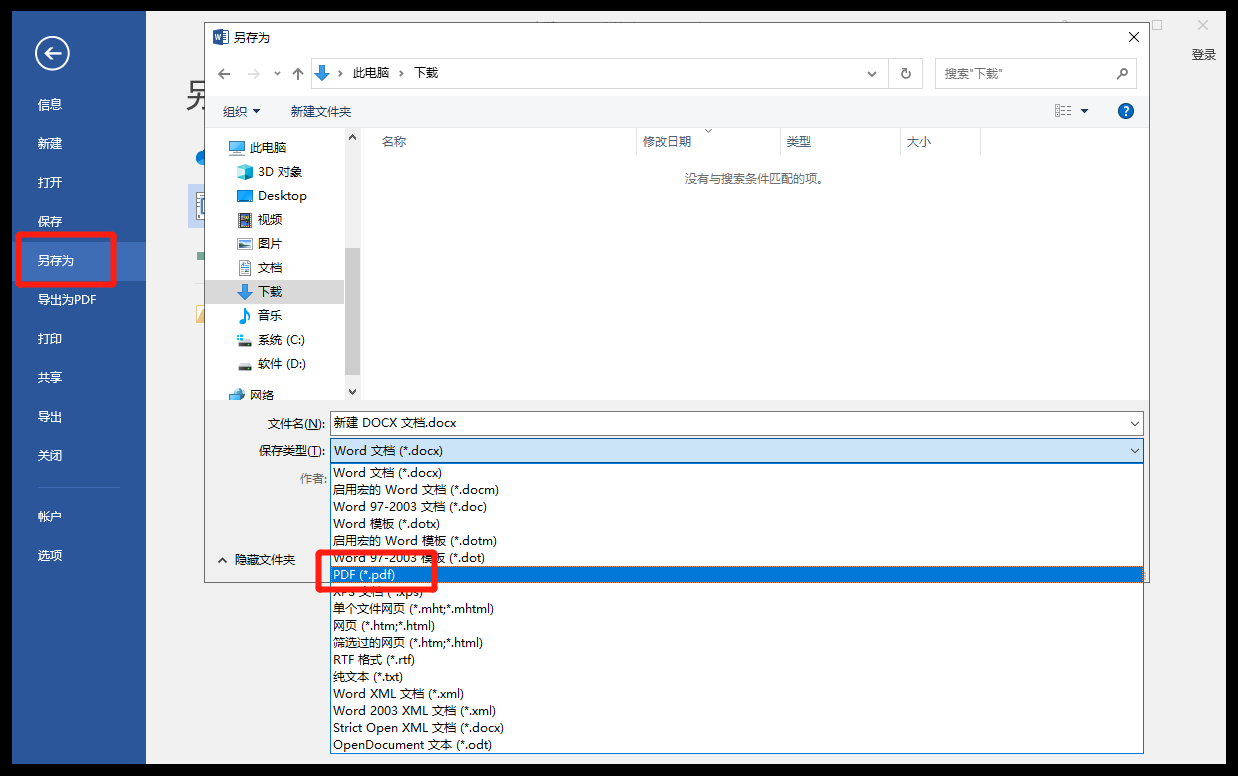 第二步:以上设置完成后,我们可以点击上方功能栏中的【文件】,选择【另存为】,将【保存类型】改为【PDF】格式,最后点击保存。