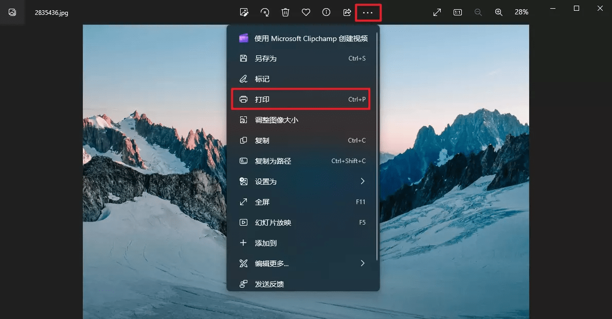直接打开图片,在图片上方点击【...】,然后点击【打印】。