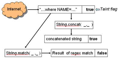 分析两种常用的安全测试的方法,对于外部输入数据的测试都有一定的不足之处,那么如何才能对外部输入数据进行较好的安全测试呢?业界提出了动态污染传播的方法(Dynamic Taint Propagation)。