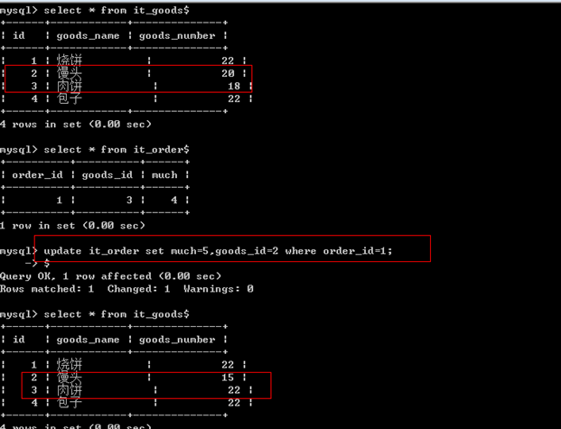 update it_goods set goods_number=goods_number-new.much where id=new.goods_id;