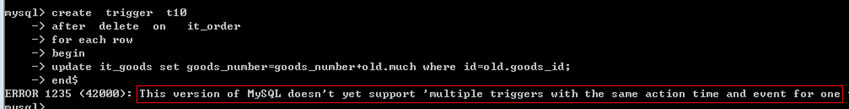 目前mysql不支持多个具有同一个动作,同一时间,同一事件,同一地点,的触发器