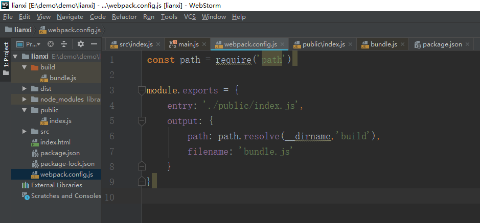 1.新建一个webpack.config.js