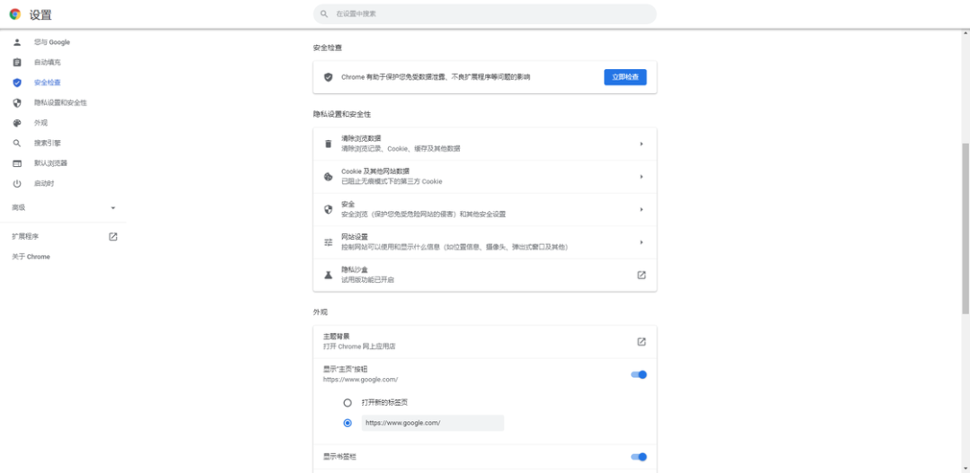 Chrome 设置中心页面在本次稳定版更新后开始启用全新的设计样式。或许是 Google 为了统一 Chrome 的界面以及相关设计元素,新版移除了原先设置页面上方的蓝色顶部通栏,转而采用和 Chrome OS 一致的纯色设计,原先较为冗长的设置项目现在也被有意梳理成了更加直观、易懂的不同设置区域,通过侧边栏即可进行导览。这些更新其实也可以看作是 Google WebUI 设计改造的一部分。