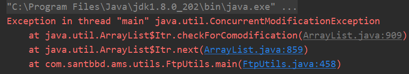 fail-fast即快速失败,它是Java集合的一种错误检测机制。当多个线程对集合(非fail-safe的集合类)进行结构上的改变的操作时,有可能会触发fail-fast机制,这时就会抛出ConcurrentModificationException(当方法检测到对象的并发修改,但不允许这种修改时就抛出该异常)。注:即使不是多线程环境,如果单线程违反了规则,同样也有可能会抛出改异常。我们再仔细分析一下上面foreach控制台打印的堆栈信息: