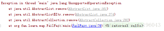 //因为,Arrays.assList的底层实现是使用数组实现的,而数组不支持remove操作。