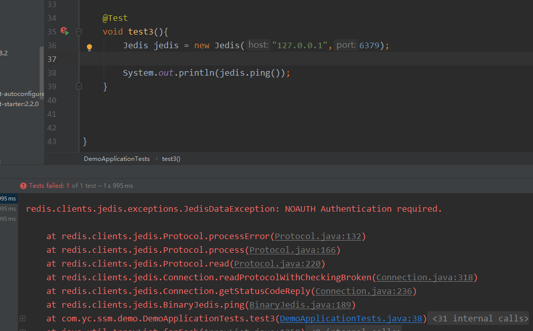 初学redis,第一次通过java端连接redis,出现NOAUTH Authentication required.错误