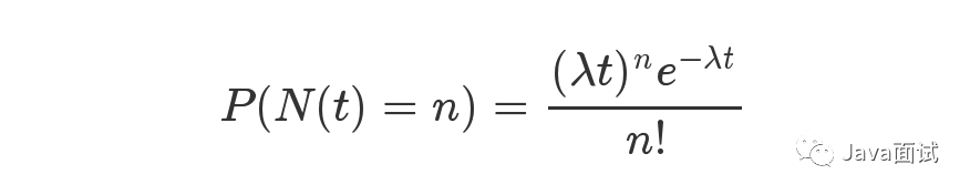 等号的左边,P 表示概率,N表示某种函数关系,t 表示时间,n 表示数量。等号的右边,λ 表示事件的频率。