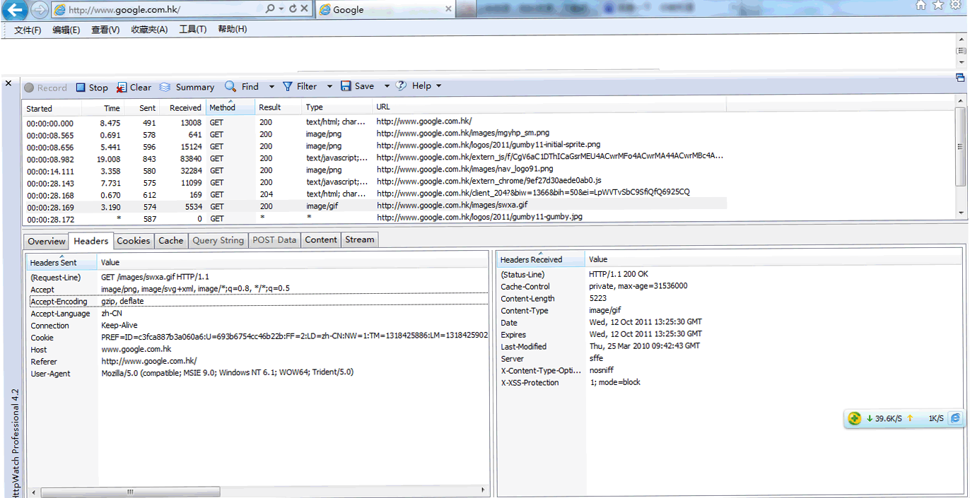 下面我们以谷歌为例介绍下 HTTP WATCH 是如何工作的