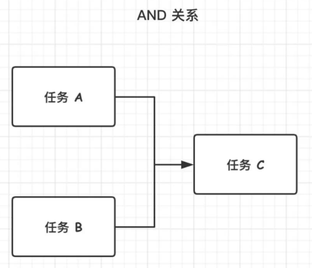 如上所示,只有任务 A 与任务 B 都完成之后,任务 C 才会开始执行。