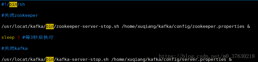 sh /usr/local/kafka/kafkastop.sh #关闭kafka