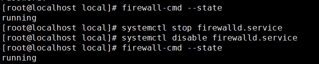 我这里出现了一个小问题,以前没出现过的:执行以上命令后,再次查看防火墙状态居然还是running