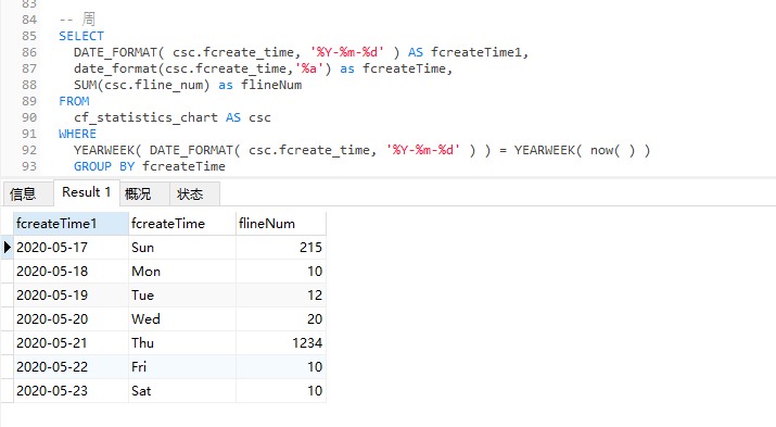WHERE YEARWEEK( DATE_FORMAT( csc.fcreate_time, '%Y-%m-%d' ) ) = YEARWEEK( now( ) )