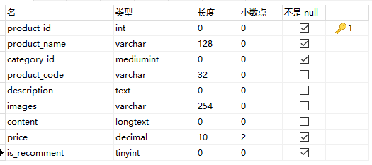 1、商品表:product