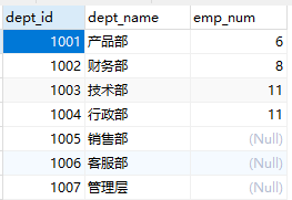 2、部门表:department