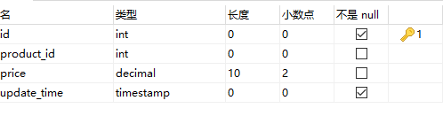 | update_time | TIMESTAMP | NOT | 默认值为修改时间 | 更新时间 |
