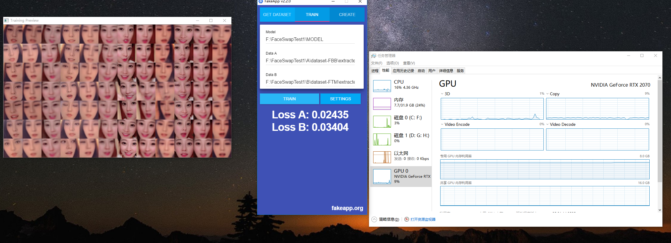 本人原来是1070TI,根据教程安装了CUDA9.0以及同版本Cudnn,使用FakeAPP完全没有任何问题,但最近升级为RTX2070显卡,另外重装了系统,按原教程安装后,FAKEAPP出现如下问题:1.GPU初始化慢,只是普通的切脸,GPU初始化时间大概需要5~10分钟,使用cpu初始化很快,但是切脸速度比较慢,原来1070TI处理这个步骤的所有内容也没超过2分钟过。2.训练模型失败,一方面是初始化过慢,另外还有一部分报错:无法进行训练……。