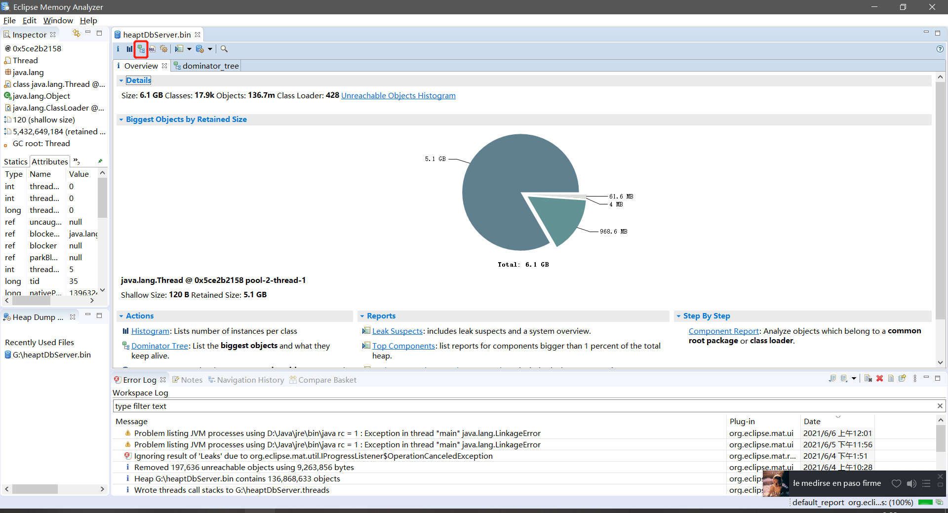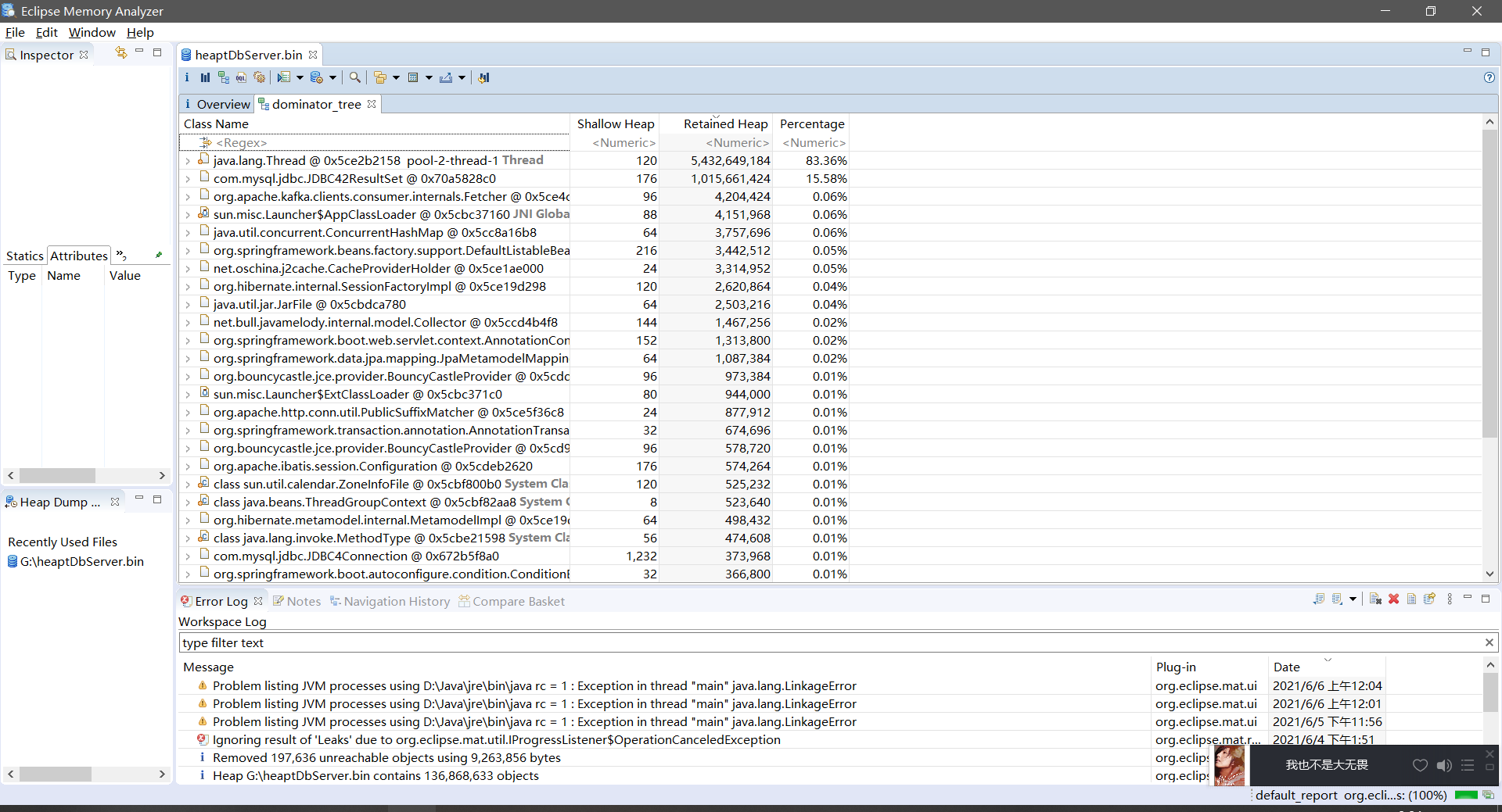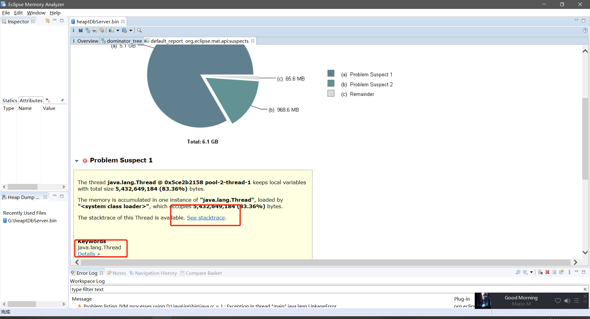 剩下来的就是把/data/bhopid_output/testHeap.bin这个文件复制到本地,利用Eclipse Memory Analyzer Tool 进行分析!