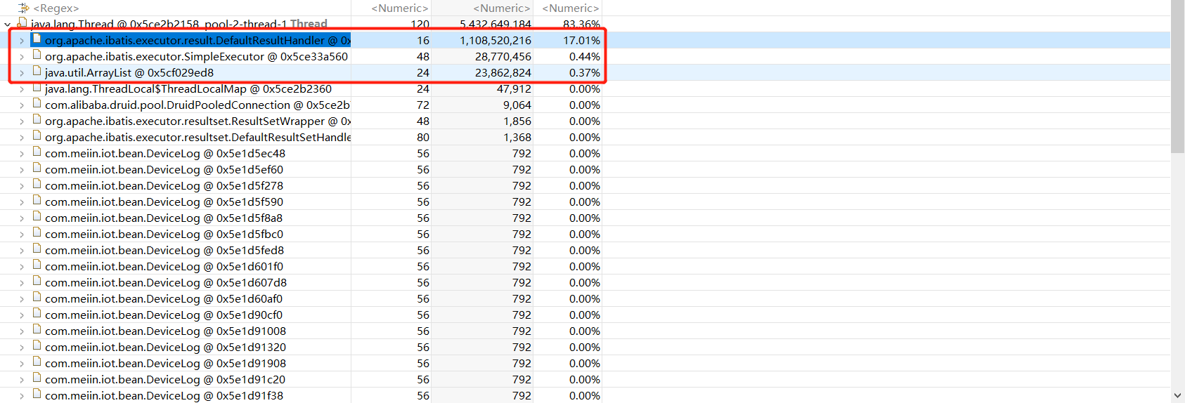 堆积了大量的resultset对象,就是通过数据库查询返回来的对象