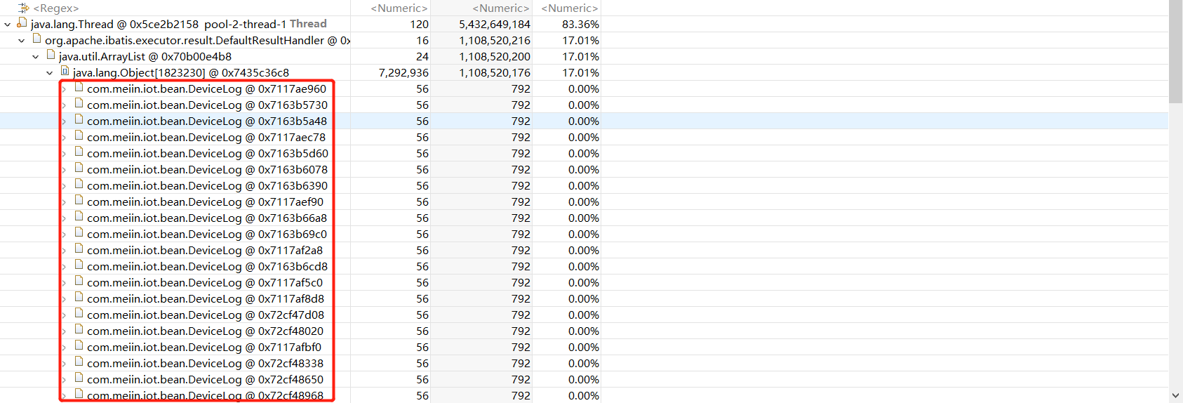 这里存在大量的相同对象堆积
