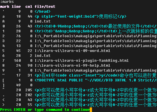 利用:help mark-motions命令,可以查看关于标记的更多帮助信息。