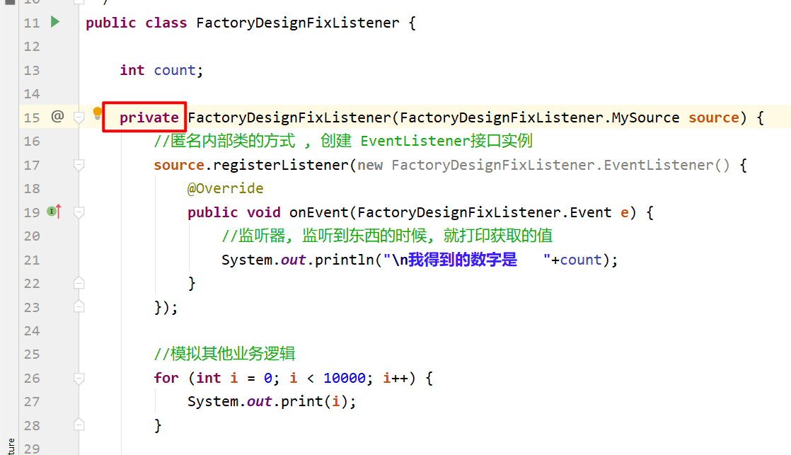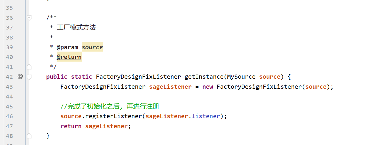 * 类描述: 工厂模式修复监听器的对象还未初始化完成就对外发布