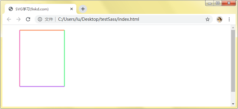 在绘制这些直线时,是通过两个点来绘制的,我们可以通过控制起始点的坐标和结束点的坐标控制线条的位置。使用 stroke 属性设置线条的颜色,stroke-width 属性设置线条的宽度。