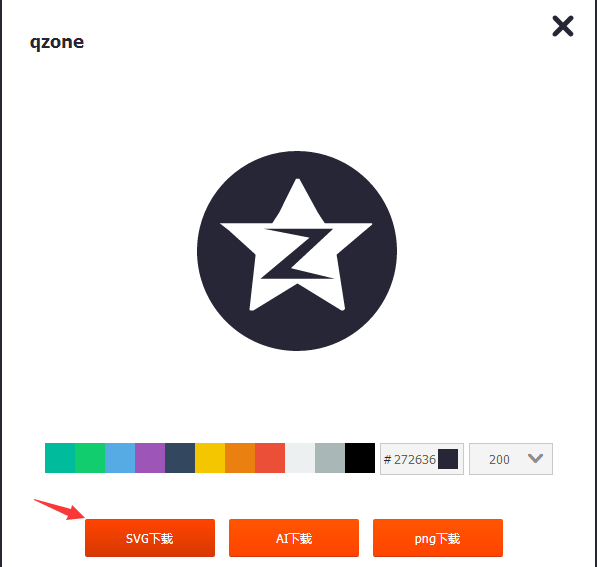 最简单的方法,首先到阿里巴巴矢量图标库 http://www.iconfont.cn/ 去下载svg格式的图形。搜qzone,选择其中一个,点击SVG下载: