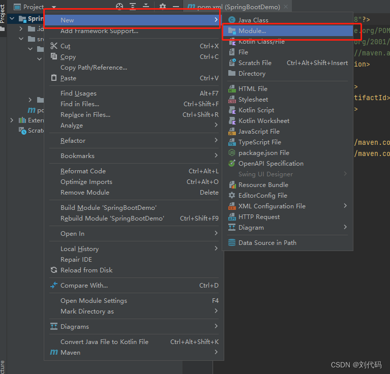 在SpringBootDemo项目上右键选择【new】—【Module…】,弹出如下图2所示界面
