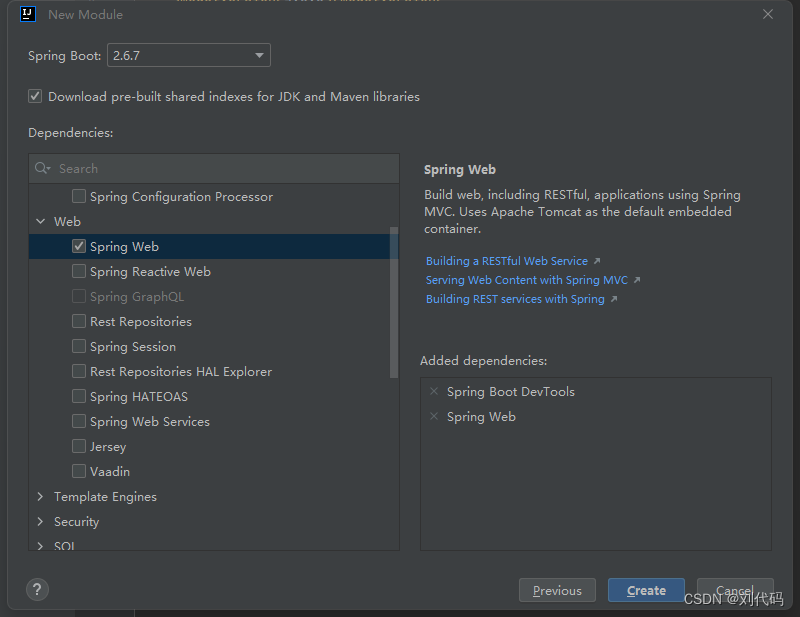 web模块勾选【Spring Web】